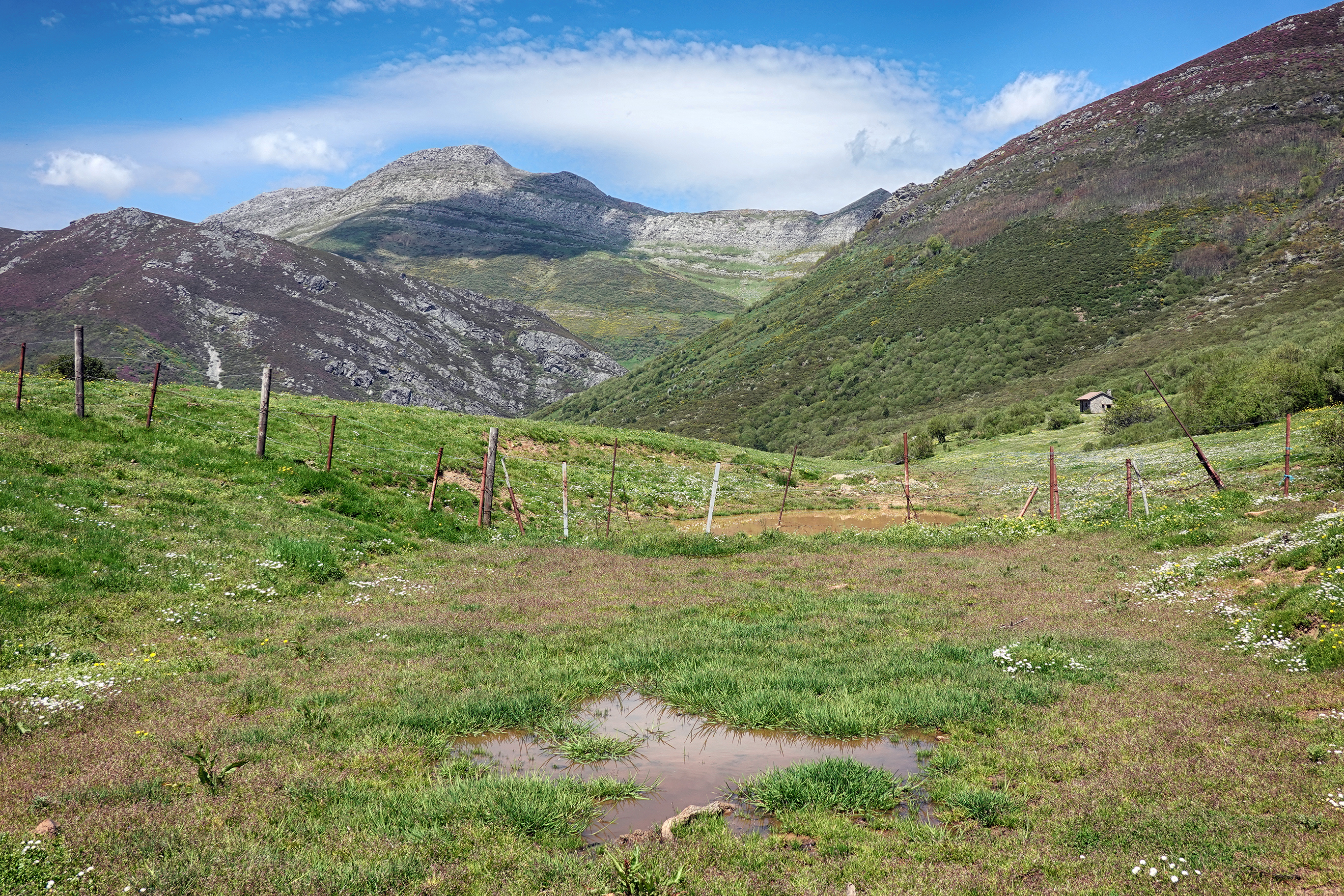 It was only a short climb to the high point of the circuit at La Divisa, where there is a corral for cattle and a great view towards Pico Cirbanal (2077m) . It was necessary to have to duck under the barbed-wire fence here.